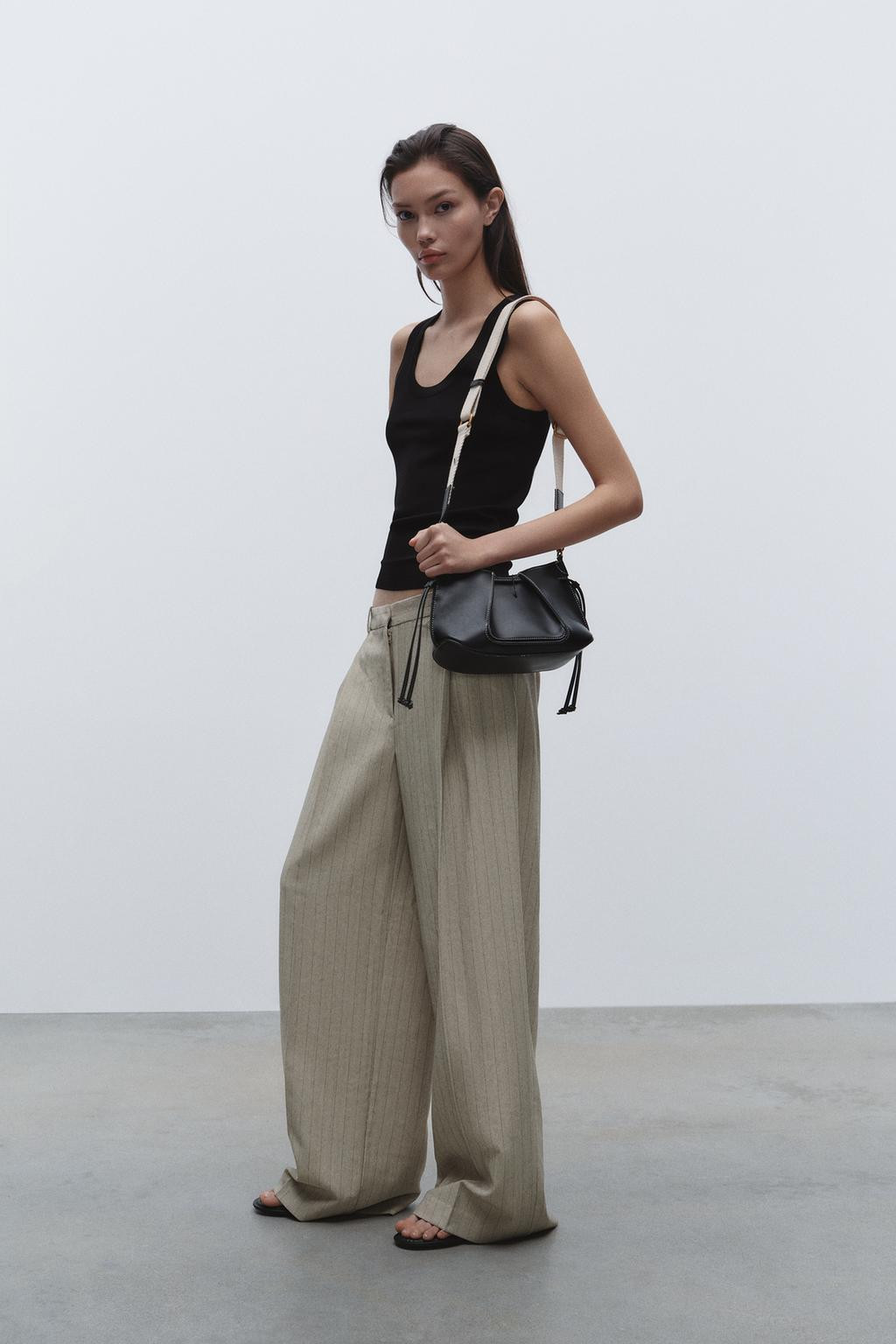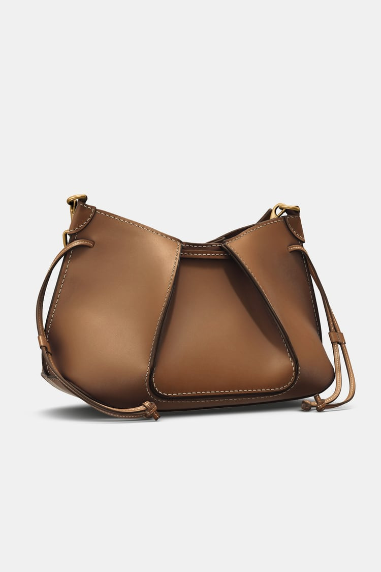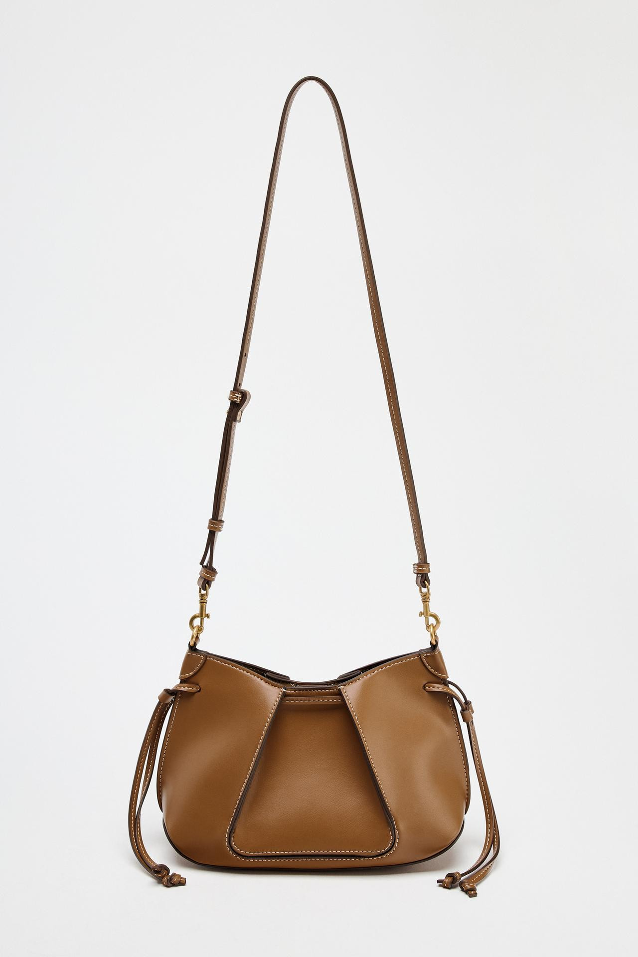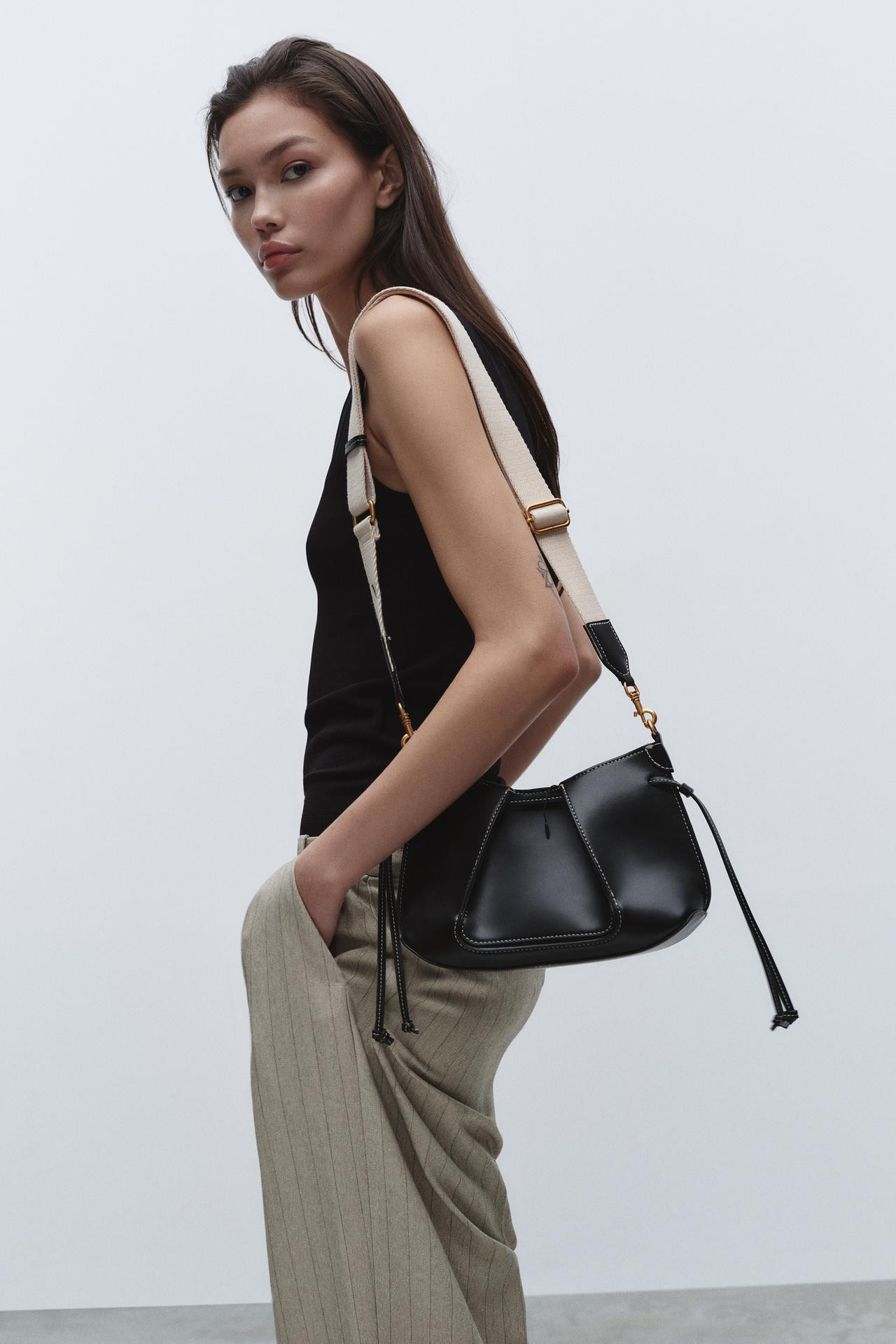 Mini bag with pleated detail on the top. Adjustable crossbody strap. Sides with gathered detail. Purse with removable pocket. Magnetic clasp closure.