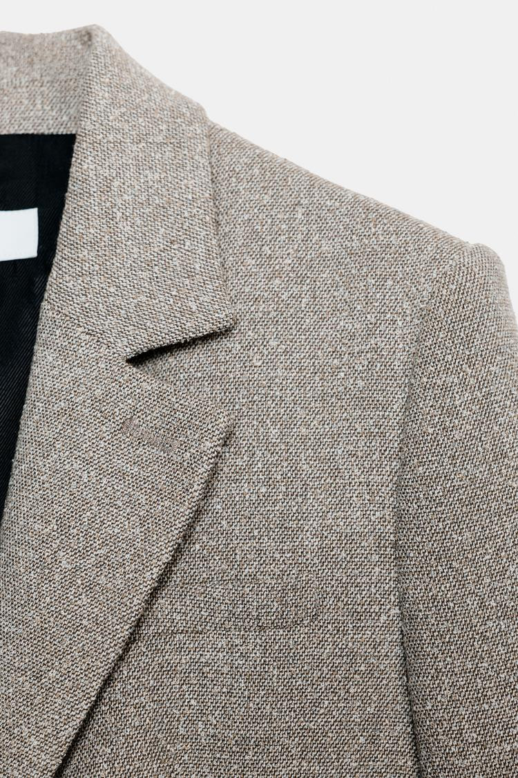 Tailored blazer with a lapel collar, long sleeves and shoulder pads. Featuring front flap pockets, a vent at the back and front button fastening.