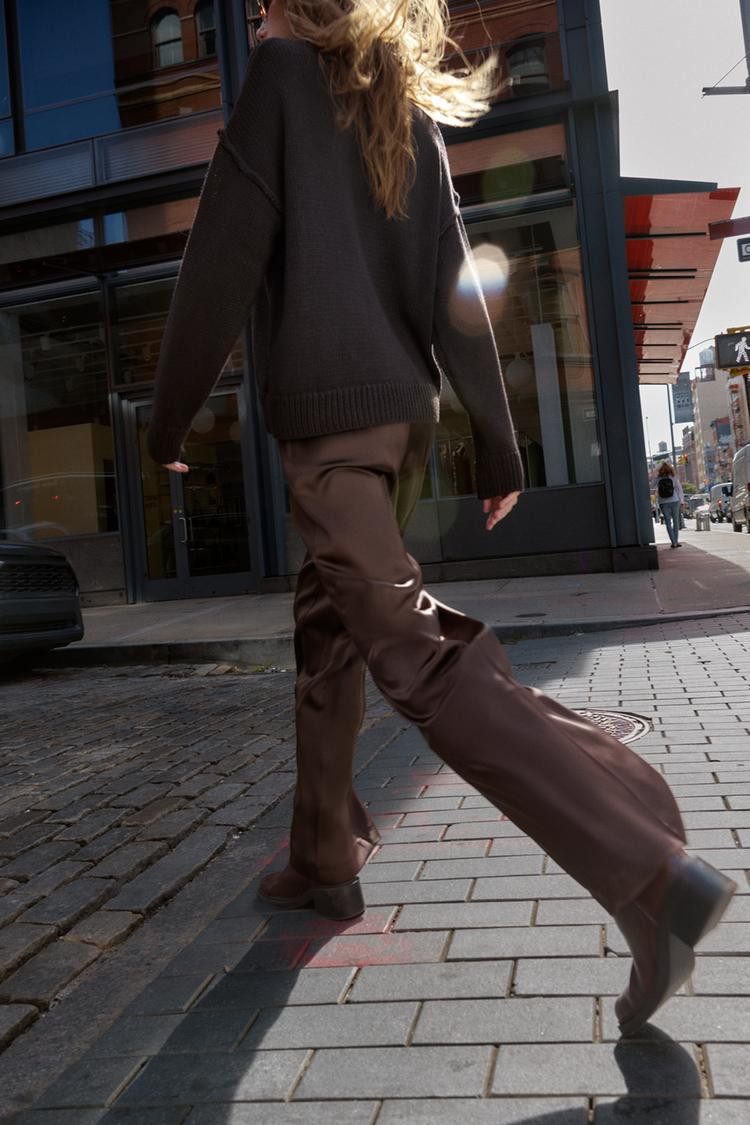 Zara SATIN STRAIGHT-LEG TROUSERS