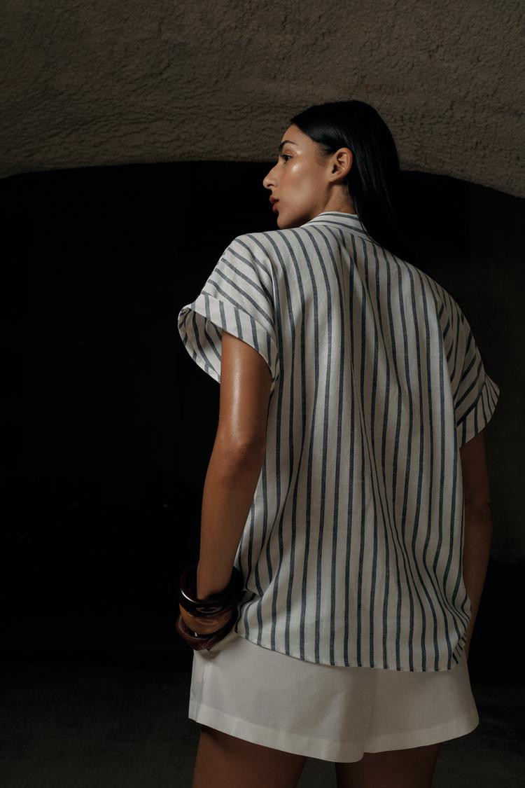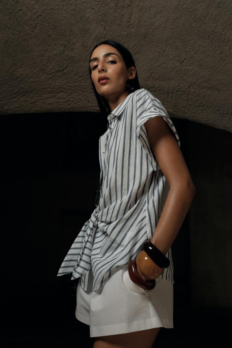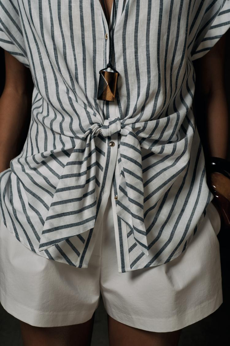 Zara STRIPED KNOTTED LINEN BLEND SHIRT