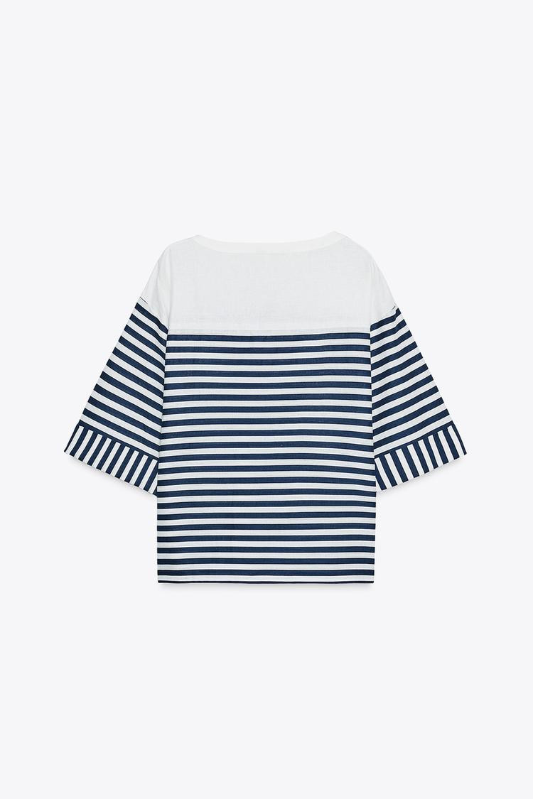 Shirt made with a linen blend. Boat neck and wide short sleeves finished with a turn-up and buttons on the shoulder.