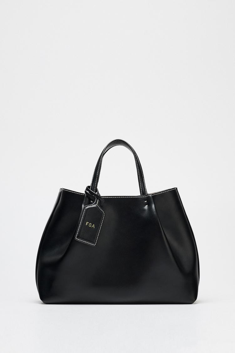 City bag. Top handle and detachable, adjustable crossbody strap. Topstitched detail. Removable inner pouch with zip fastening.