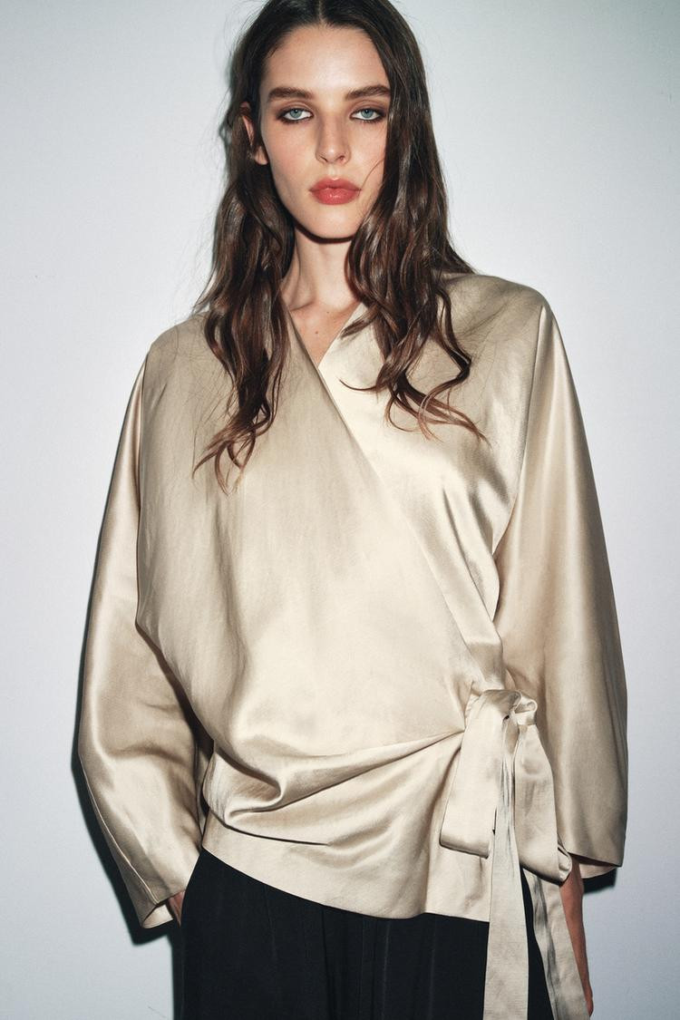 Zara WRAP BLOUSE WITH BOW IN LINEN ZW COLLECTION
